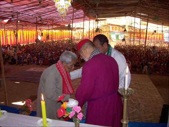 Presentation to one of the oldest clergy by the Bishop of NE India |